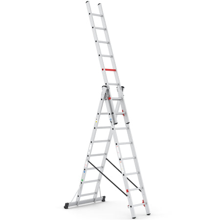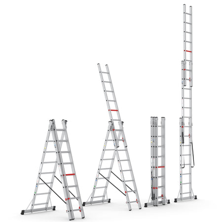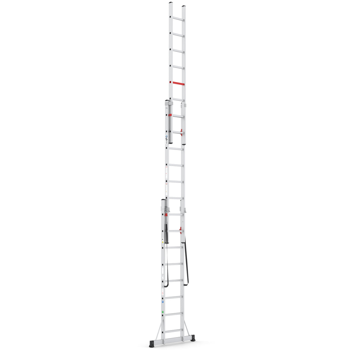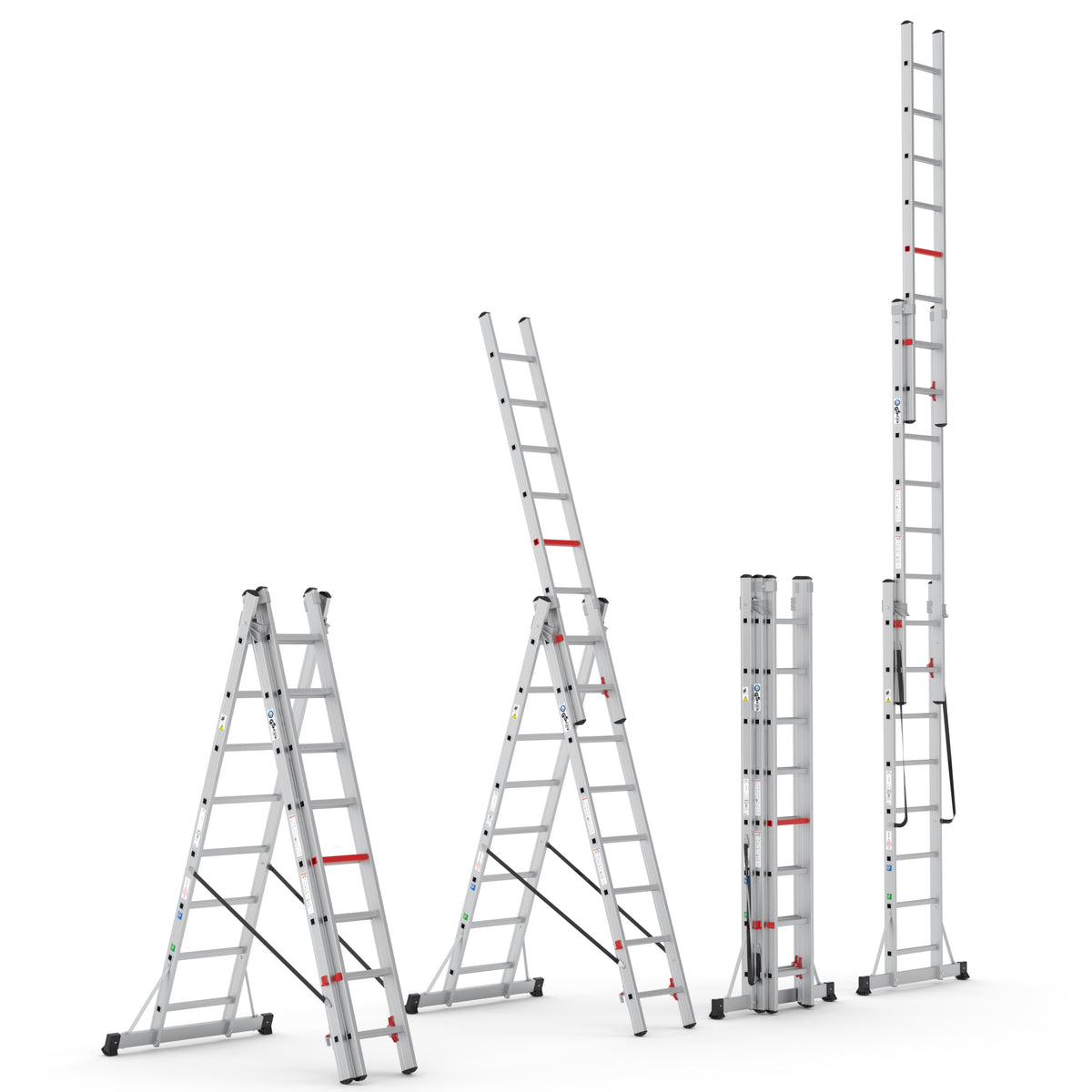 Dank der Möglichkeit, die Leiter sowohl in ausgefahrener Position als auch als A-Leiter zu verwenden, eignet sie sich perfekt für eine Vielzahl von Anwendungen – von Arbeiten an Fassaden und Dächern bis hin zu Einsätzen in Innenräumen.