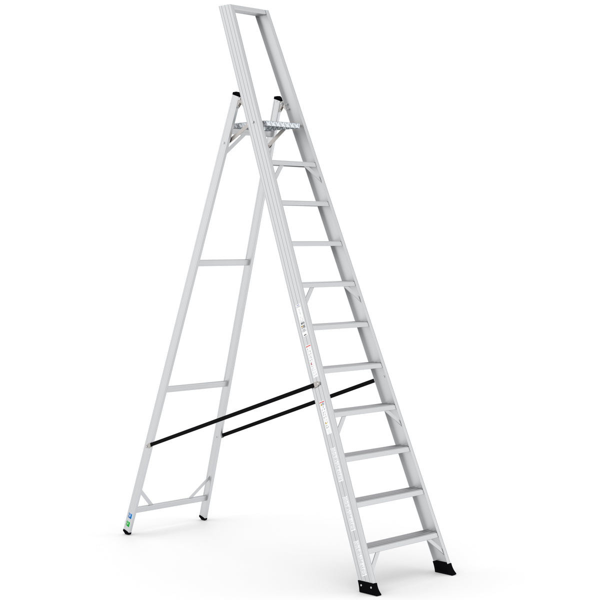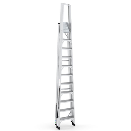 Die Expert Trittleiter mit 11 Stufen wurde speziell für höchste Stabilität und Sicherheit bei Arbeiten in großen Höhen entwickelt. Dank der robusten Aluminiumplattform, tiefen Stufen und ergonomischen Bauweise bietet sie eine langlebige Lösung für professionelle und industrielle Anwendungen.