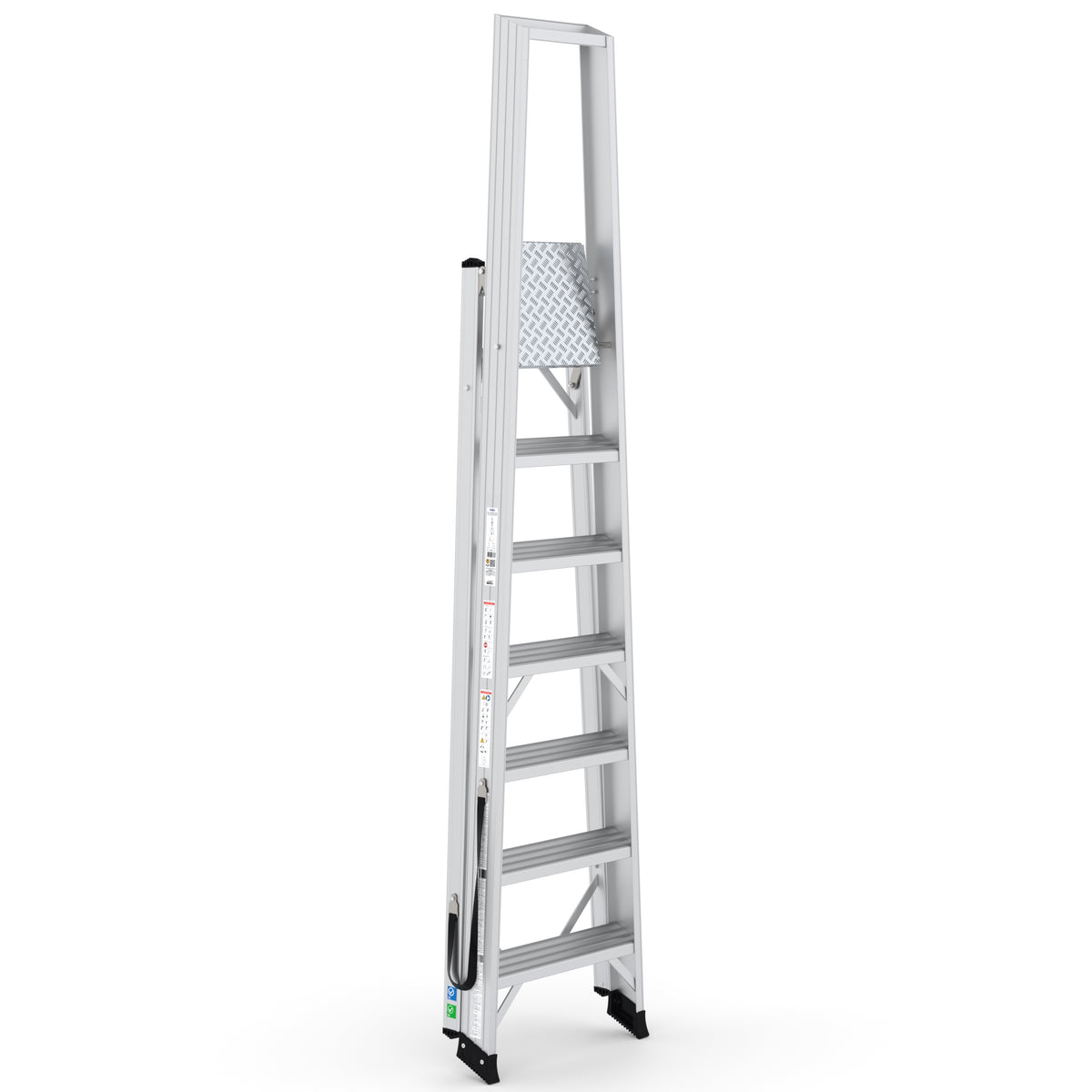 Dank der rutschfesten Stufen und der verstärkten Aluminiumplattform bietet diese Leiter höchste Sicherheit. Die praktische Werkzeugablage sorgt für eine optimierte Arbeitsweise, indem alle notwendigen Werkzeuge stets griffbereit sind.
