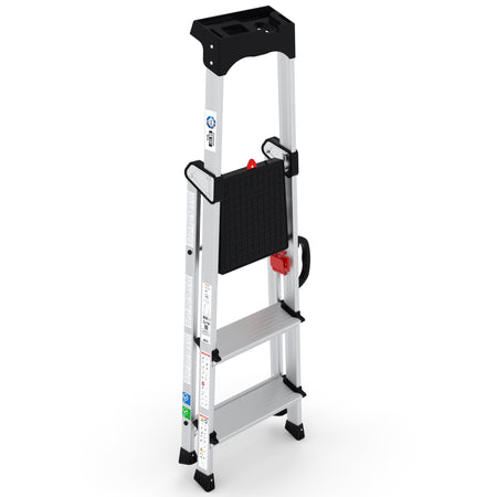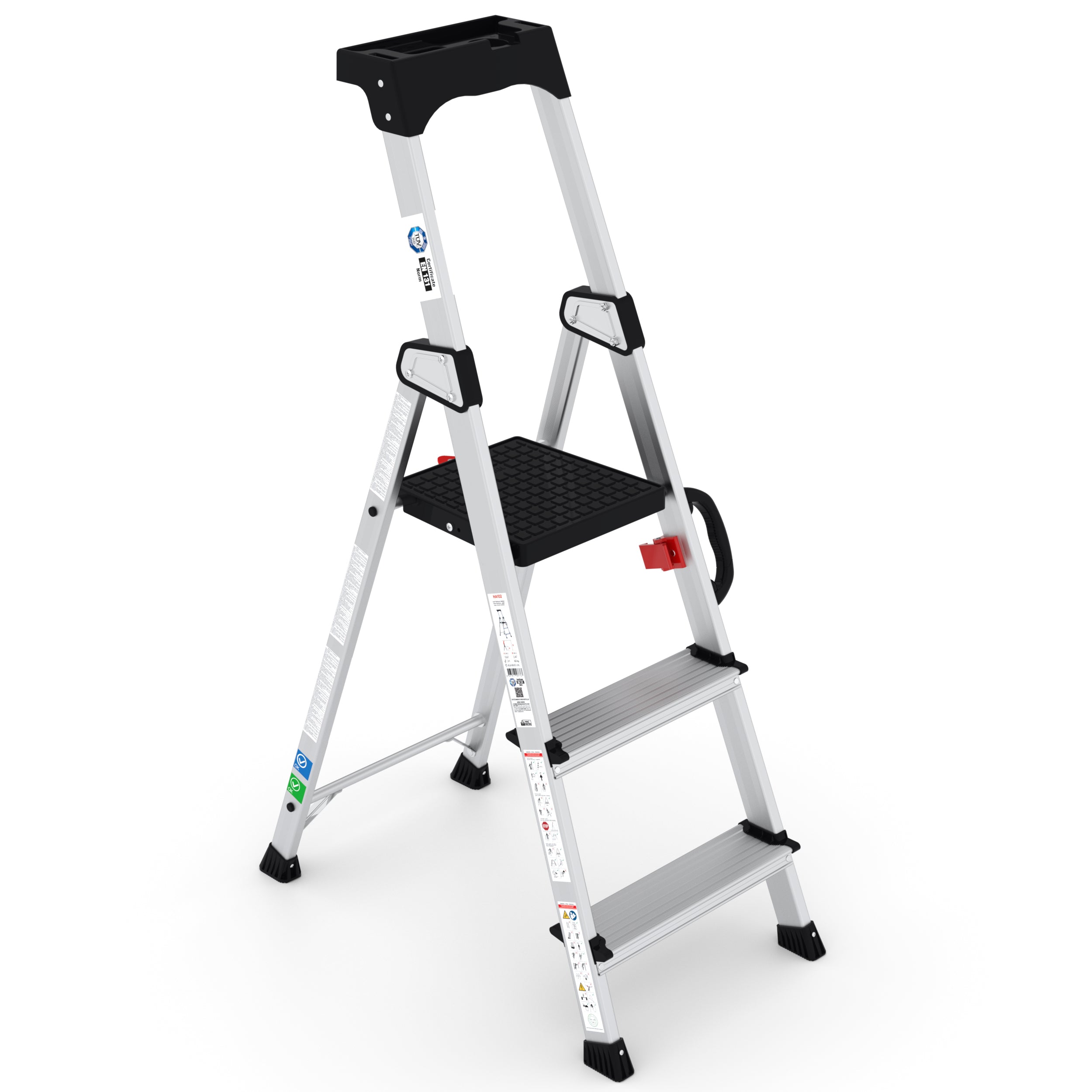 Dank des sicheren Clips, der die Leiter beim Transport stabil hält, eignet sie sich optimal für mobile Einsätze. Die rutschfesten Stufen und die verstärkte Konstruktion sorgen für sicheren Stand – egal ob im Haushalt oder auf der Baustelle.