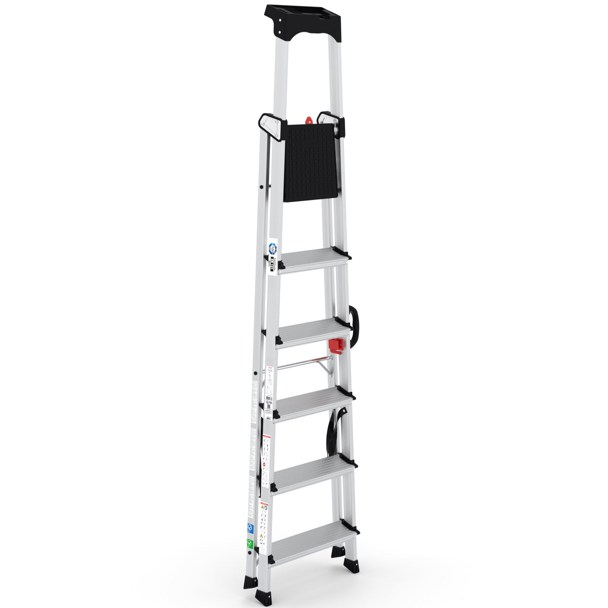 Mit rutschfesten Stufen und einem sicheren Clip für den Transport ist diese Trittleiter besonders langlebig und zuverlässig. Dank des klappbaren Designs lässt sie sich mühelos verstauen und transportieren – ideal für den professionellen & privaten Einsatz.