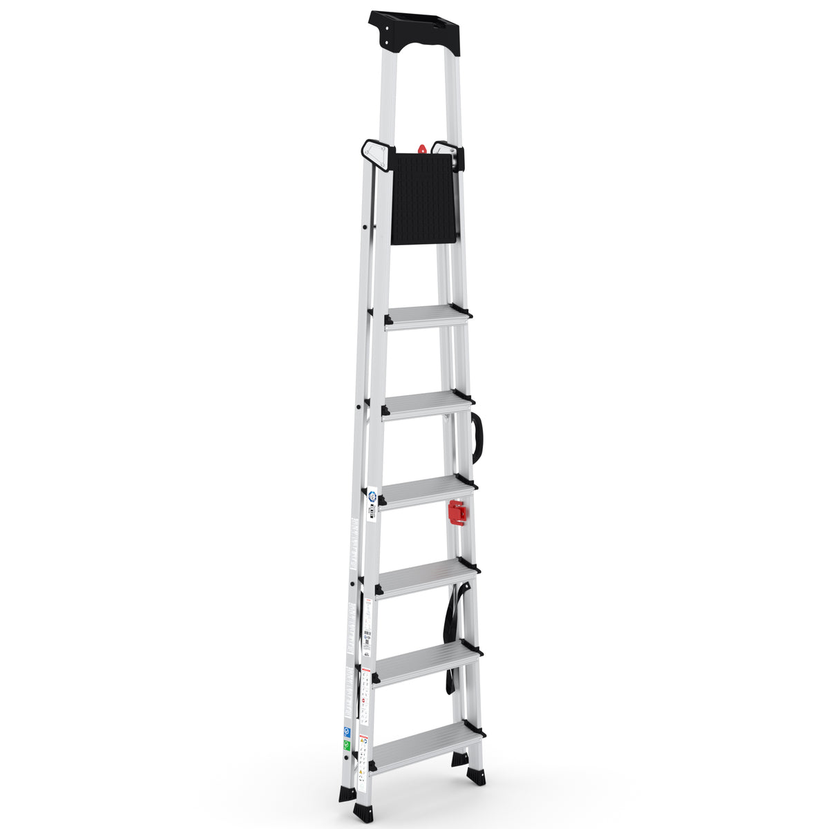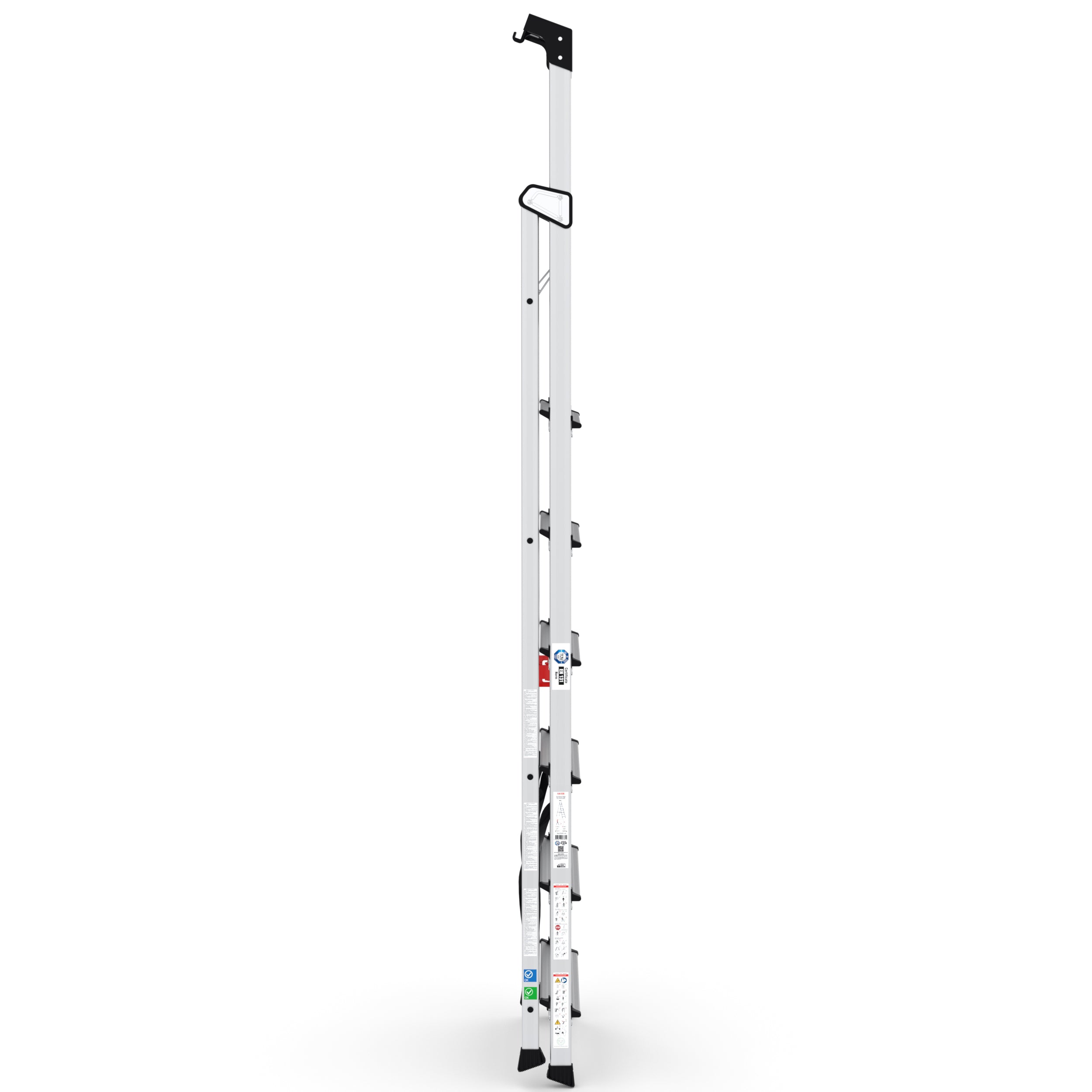 Dank des sicheren Clips für den Transport und der kompakten Klappfunktion lässt sich die Trittleiter mühelos verstauen und transportieren – ideal für mobile Handwerker oder den täglichen Einsatz im Haushalt und Gewerbe.