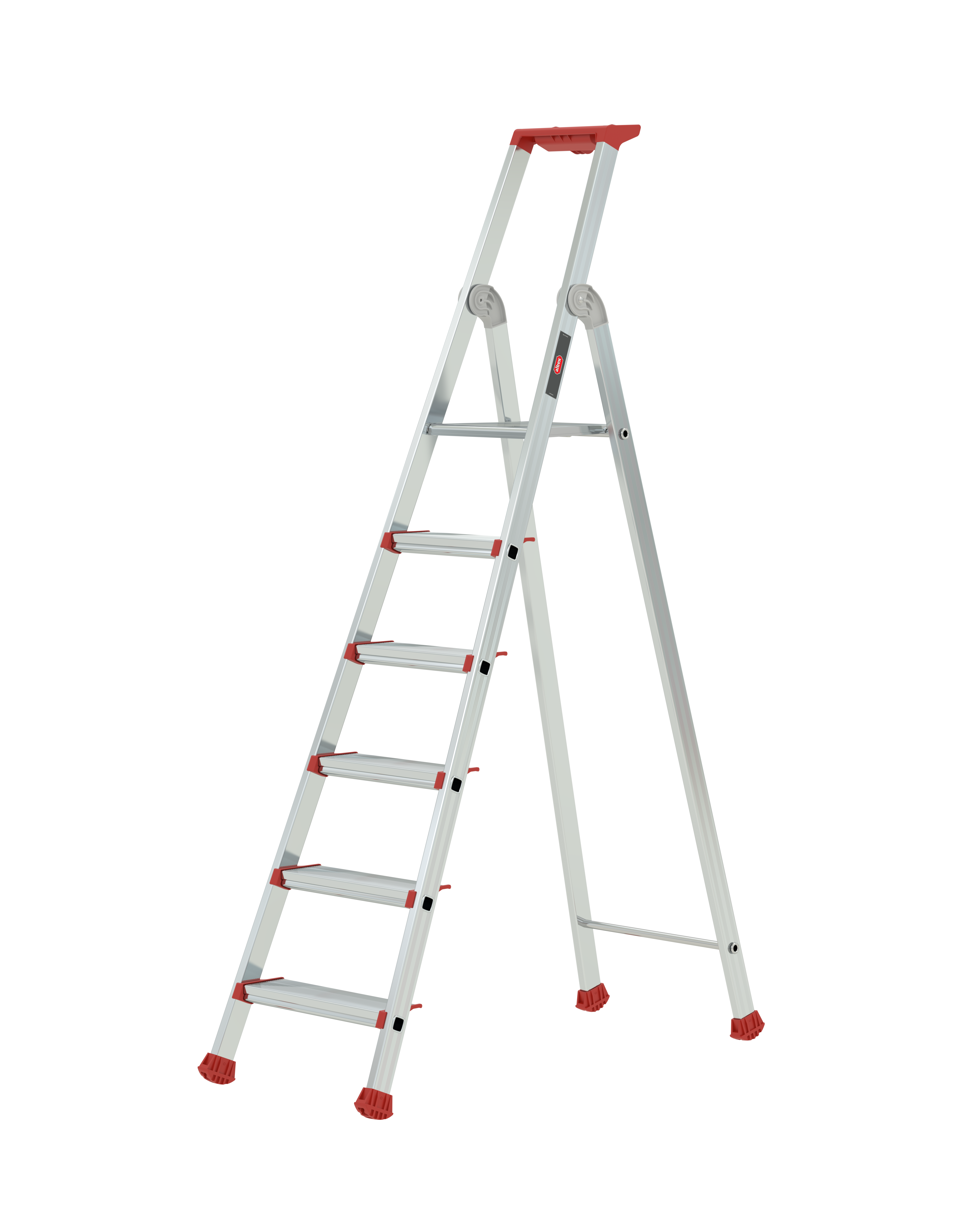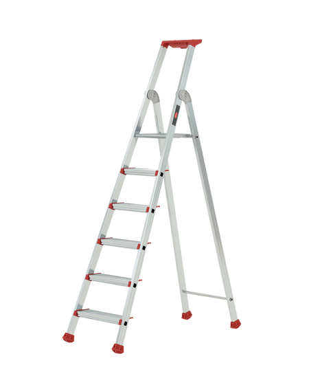 Die 110 mm tiefen Komfortstufen ermöglichen einen sicheren Stand und sorgen dafür, dass auch längere Arbeiten komfortabel ausgeführt werden können. Die extragroßen, rutschfesten Standfüße sorgen für maximale Stabilität – auf nahezu jedem Untergrund.