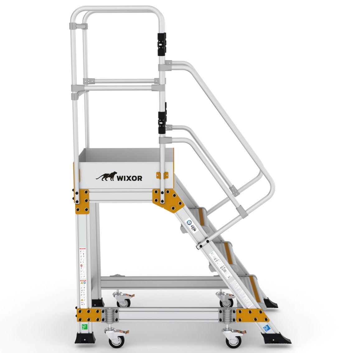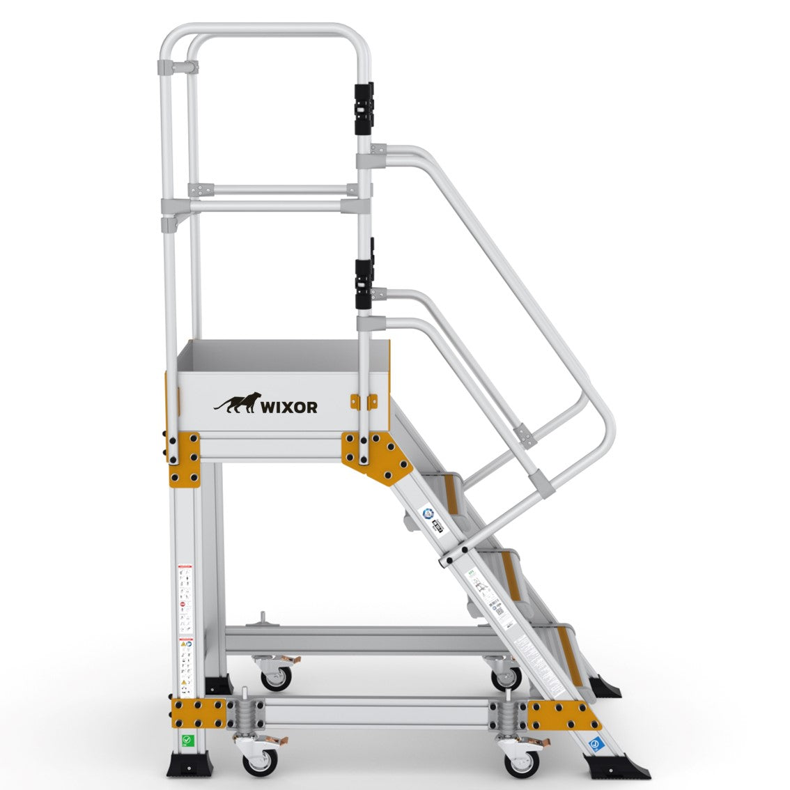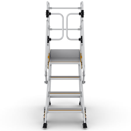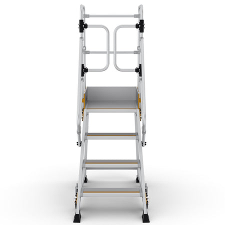 - Große Arbeitsplattform (60 x 61 cm) mit umlaufendem Sicherheitsgeländer & selbstschließenden Flügeltüren