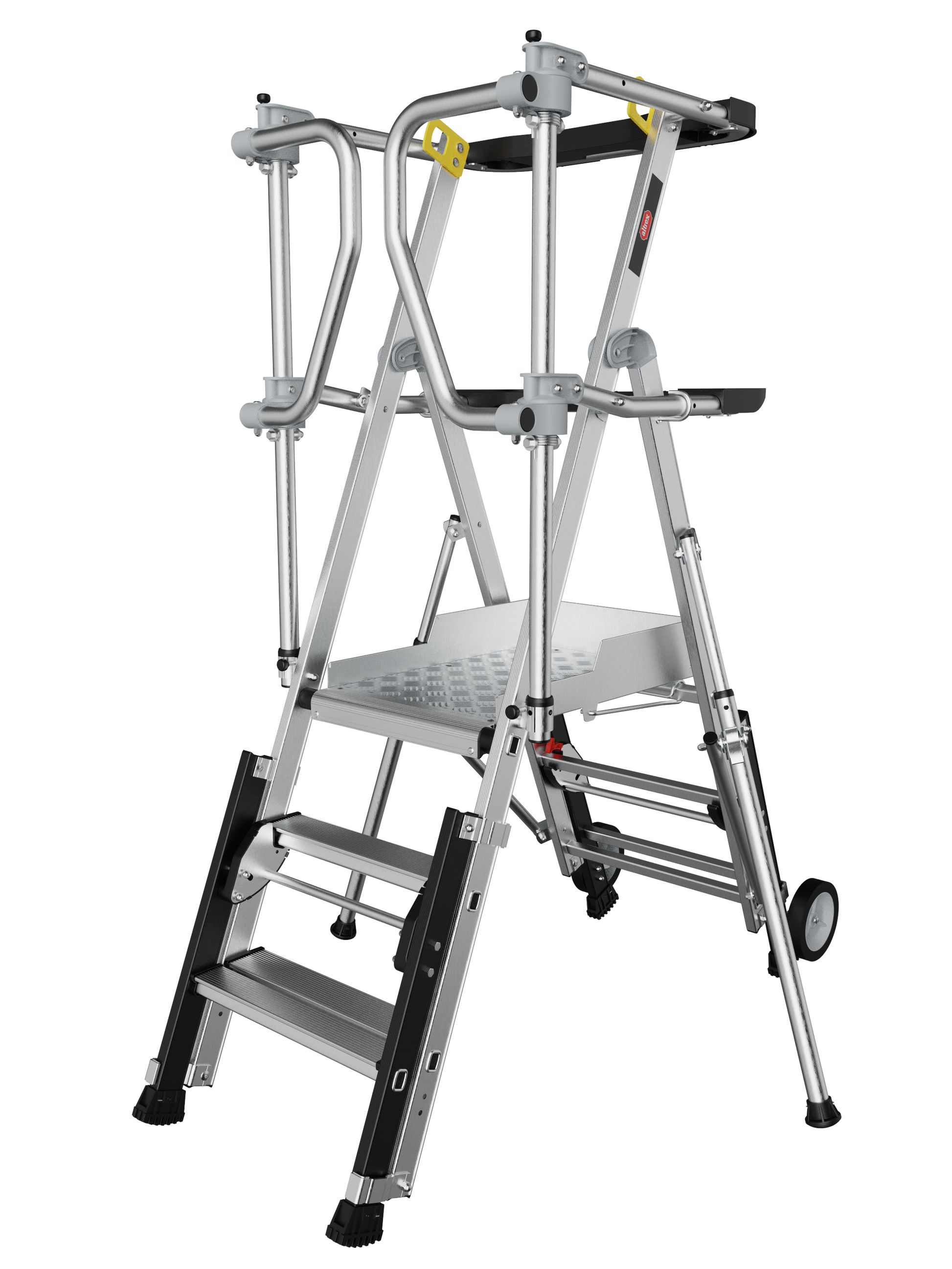 Die extragroße Aluminium-Plattform (60 × 40 cm) bietet ausreichend Platz für einen sicheren Stand. Sie sorgt dafür, dass Arbeiten wie Montage, Installation, Elektro- oder Malerarbeiten ergonomisch und angenehm durchgeführt werden können.