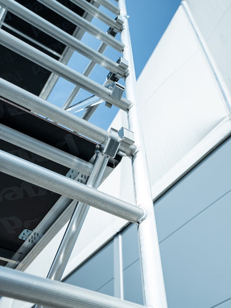 Schneller Aufbau, hohe Stabilität und platzsparende Maße machen dieses Gerüst zur idealen Wahl für professionelle Einsätze.