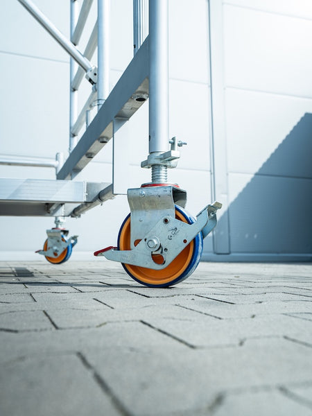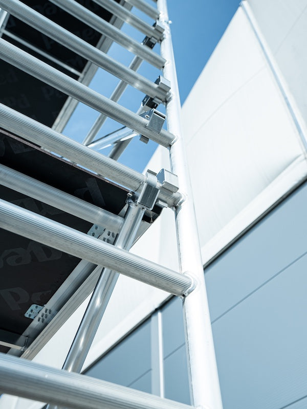 Dank integriertem Fahrbalken lässt sich das Gerüst besonders einfach versetzen – ohne Demontage. Der Fahrbalken erhöht gleichzeitig die Grundstabilität.