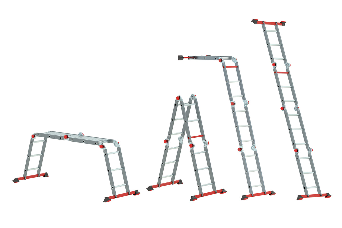 Die Varitrex PRO 4×3 ist eine hochwertige Multifunktionsleiter mit Plattform, die sich in verschiedene Positionen bringen lässt: als Stehleiter, Anlegeleiter, Arbeitsplattform oder Leiter mit Wandabstand. Ideal für professionelle Einsätze und ambitionierte Heimwerker.