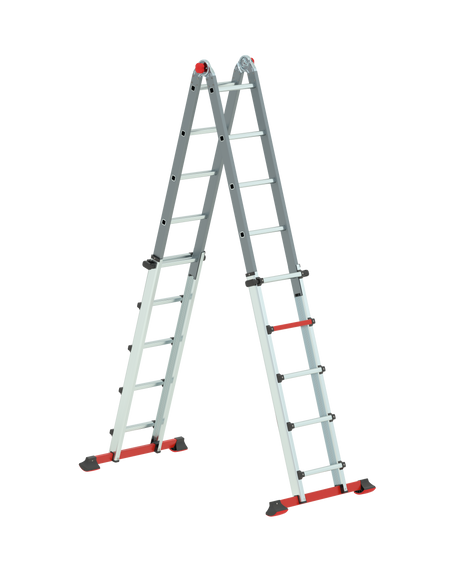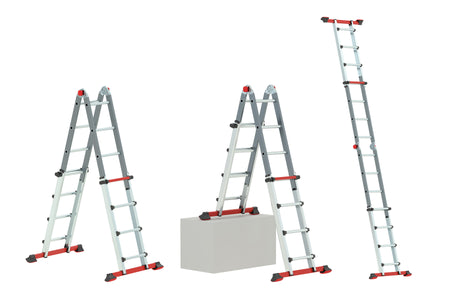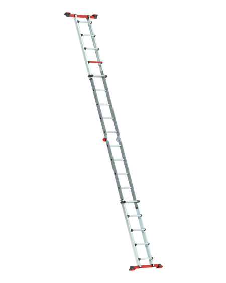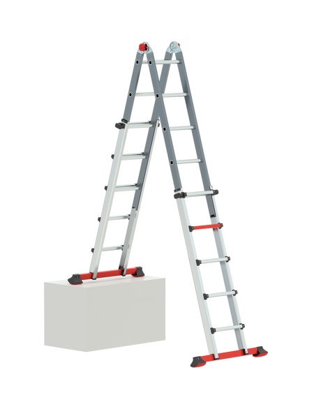 Die Varitrex Tele PRO 4×5 ist eine professionelle Teleskop-Vielzweckleiter für den gewerblichen Dauereinsatz. Sie kann als Stehleiter in A-Position oder als Anlegeleiter genutzt werden und eignet sich dank ihrer teleskopischen Höhenverstellung auch für Arbeiten auf Treppen oder unebenem Untergrund.